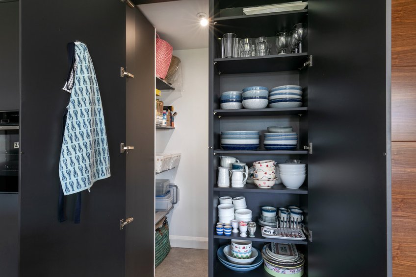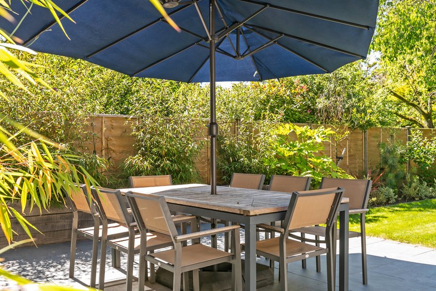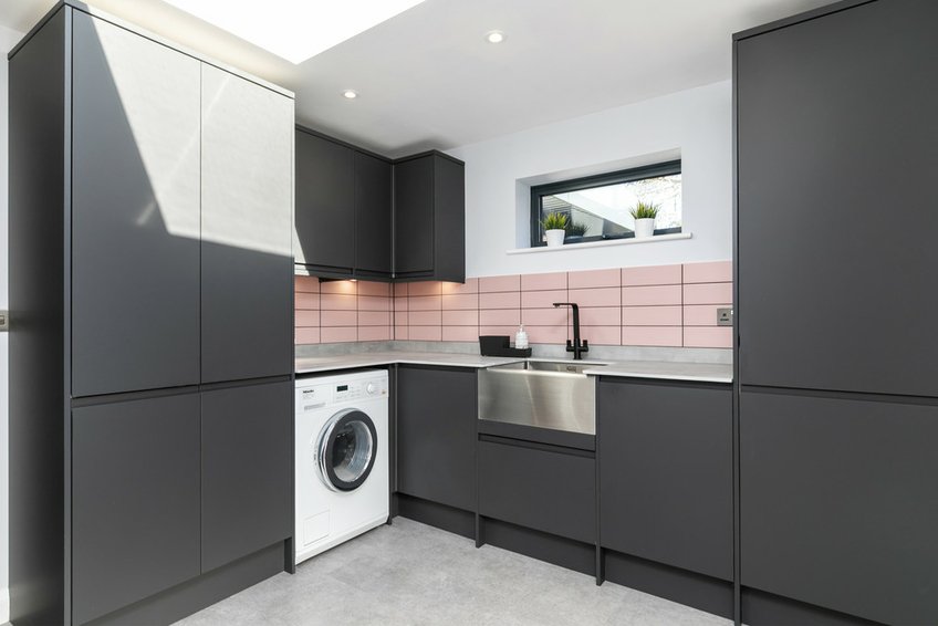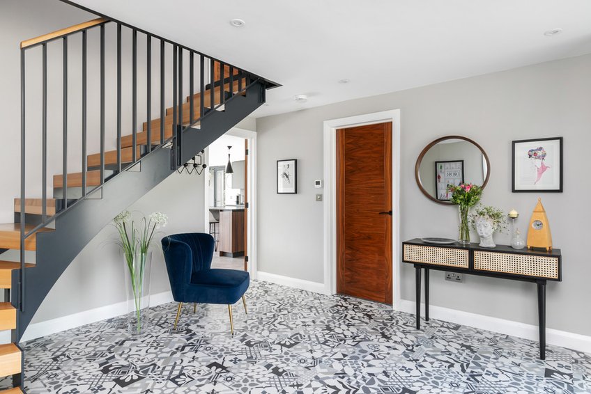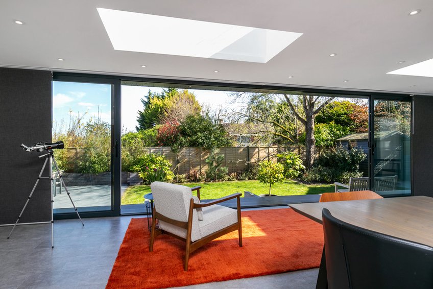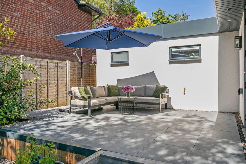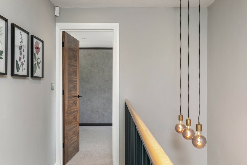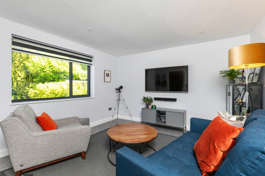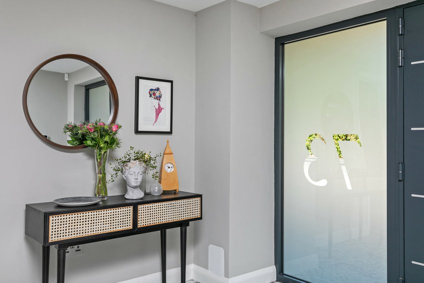 This spacious detached house has been completely renovated throughout and provides exceptionally well-presented accommodation over its two floors. An oversized front door is flanked by glazed slips and opens into a welcoming entrance hall which is fitted with a bespoke metal framed staircase with beech treads rising to the first floor. One side of the hallway is a snug with a front aspect window, whilst the other side is a fully fitted home office with two desks, drawers and filing space. The heart of the house is undoubtedly the kitchen/dining/sitting room which is an expansive space providing excellent natural light with three roof lights and sliding doors to the rear aspect with French doors opening onto the deck. The kitchen is fitted to one end with a 'Leicht' German kitchen with dark wooden effect base units and contrasting grey eye level units with sleek grey quartz worktops, appliances include a full height fridge, freezer, dishwasher, two ovens with a warming drawer and a fitted 'Quooker' boiling water tap. There is a walk-in pantry cupboard and an induction hob with extraction system is inset into a large island unit with breakfast counter to one side that neatly delineates the kitchen and with ample space for a large dining table with a large sitting room space. A large separate utility room keeps appliances out of the kitchen and can be accessed from the garage and external door. There is a cloakroom that completes the ground floor accommodation.