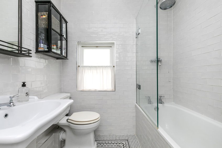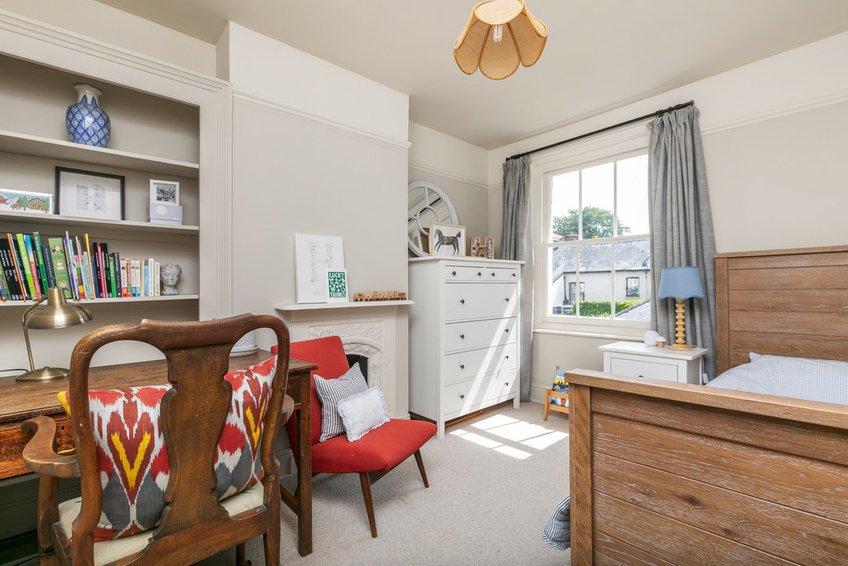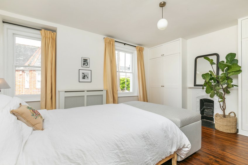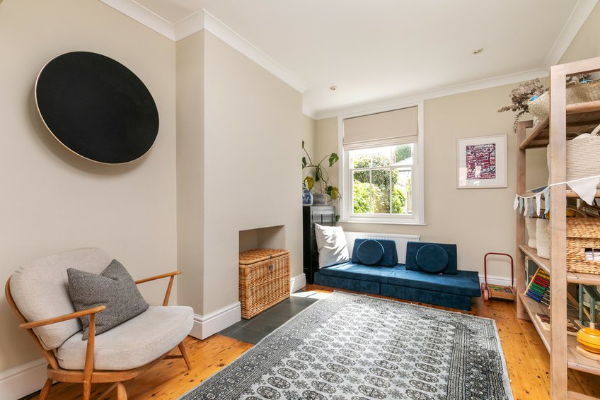 The principal bedroom has two windows to the front aspect, which feels bright due to the break in houses to the other side of the street, and has polished floorboards and a pretty fireplace, flanked by fitted wardrobes. A second double bedroom has a rear aspect window, fireplace, fitted shelving and a picture rail, whilst bedroom three is a good single or study. The bathroom has a side aspect window and provides a modern arrangement with a panelled bath with shower over, WC and wash basin.