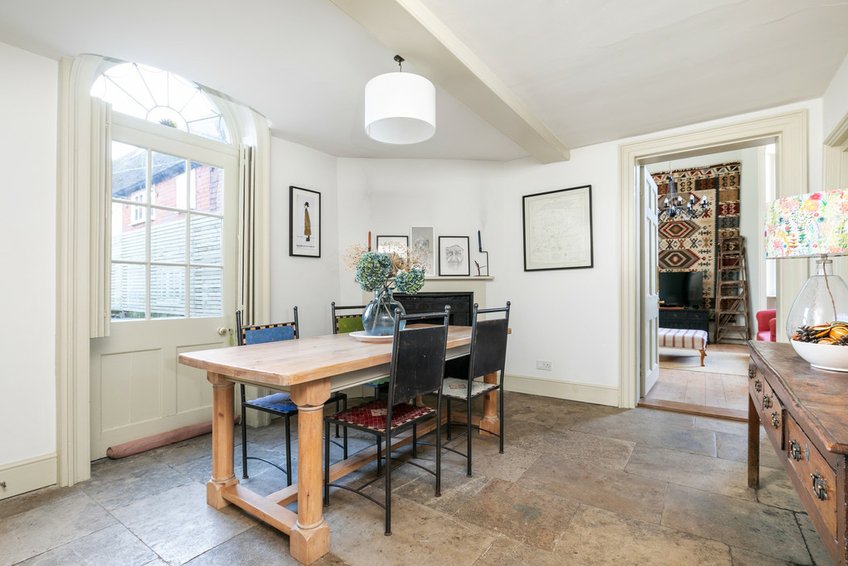 Set in the heart of the village in a Conservation Area, 'The Old Audit House' is Grade II Listed and offers the best of village life with local amenities being a moments' walk from the doorstep, whilst being set back from the main road. A useful porch leads through to the entrance hall which doubles up as a dining room and immediately feels characterful. From here, steps lead down to the substantial cellar. Most unusual for a home of this size is the property's octagonal audit room which boasts a 4m high beautiful ceiling, a grand stone fireplace and a double heighted arched sash window. This room is used by the current owners as a living room however it is a truly special space which could work in a variety of ways depending on one's needs. To the left of the dining room is another reception room, currently used as a study, a utility room with a downstairs toilet and the kitchen/breakfast room. The owners have taken great care to renovate the entire property, whilst enhancing its history and character and it shows throughout each room.