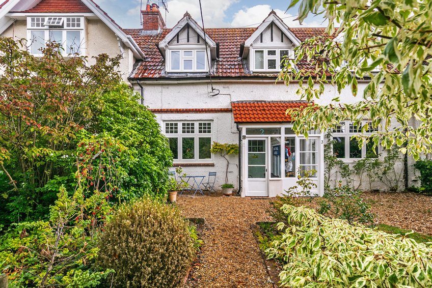 Set in the idyllic village of Crawley, this beautiful cottage is believed to date from 1910. It has well proportioned rooms with high ceilings and has been extended with a garden room, which is open to the kitchen/dining room and has doors out into the lengthy rear garden. A sitting room has a fitted gas fire and is very cosy. On the first floor are two double bedrooms providing different aspects and a landing with a nook, suitable for a small desk/study space. There is also a refitted bathroom. The second floor has a loft conversion which creates a super third double bedroom with views over the garden towards the village cricket pitch. The windows were replaced in 2021. A lengthy rear garden stretches for approximately 150 feet and is made up of different 'rooms' that provide interest. Directly behind the cottage is a part walled terrace with raised planters, enclosed by a gate that opens into a lawned area with flower and shrub borders and a pergola. The garage has twin doors as well as a pedestrian door and is currently used as a neat gym arrangement. Beyond which is a gravelled parking for several cars (which is accessed via a shared driveway with 2-5 Post Cottages). The foot of the garden has raised vegetable beds and backs directly onto the local cricket pitch.