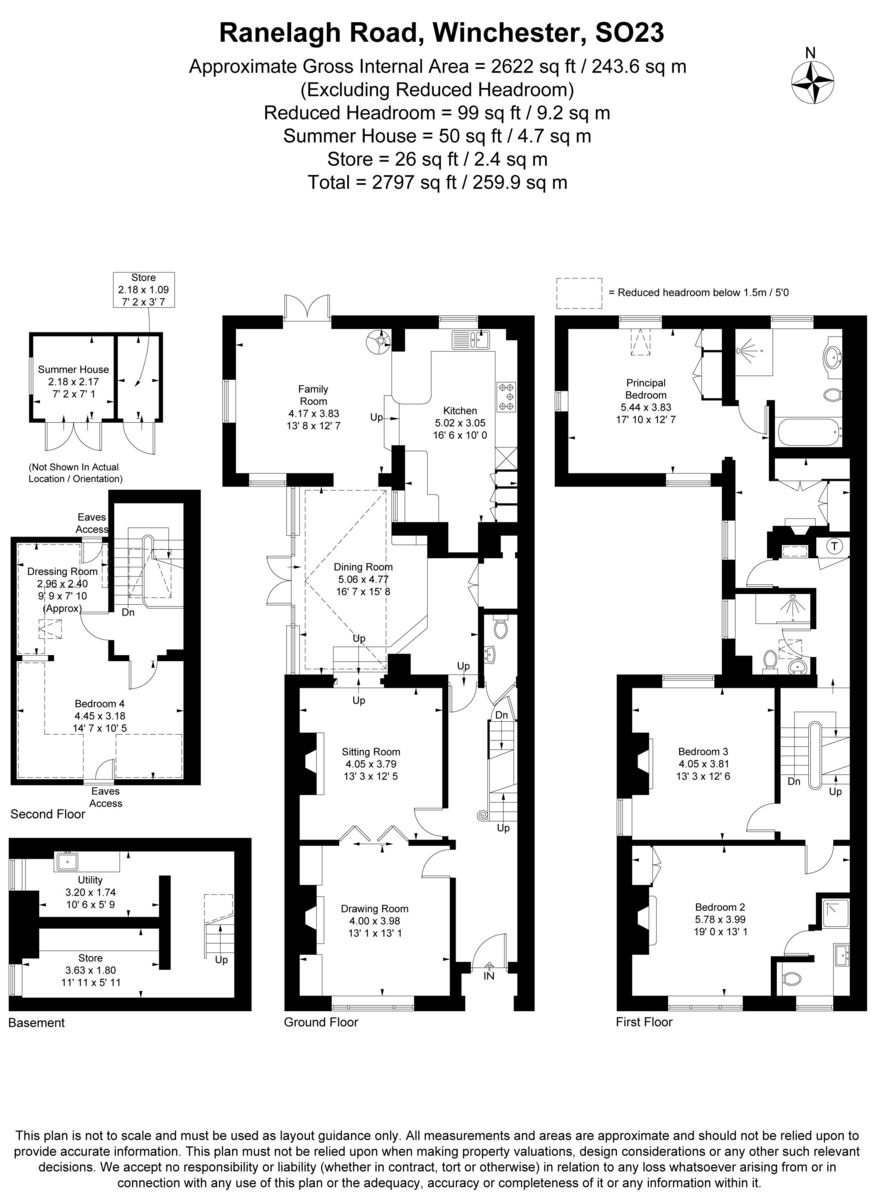A fine example of a late Victorian villa, and home to some magnificent character features including high ceilings, ceiling cornice, fireplaces and large windows. The footprint has been extended significantly to the ground floor creating the family room and dining room and above on the first floor which facilitates the principal bedroom. The property offers spacious accommodation behind a most attractive classic red brick façade with contrasting buff quoining, under a slate roof with inset windows and sash openers and is offered for sale in excellent order. A welcoming entrance hall has a turning staircase rising to the upper floors with a polished mahogany handrail. The drawing room sits to the front of the house with an imposing marble fireplace flanked by low level fitted cupboards, with doors that open into the sitting room again with a marble fireplace, stripped and polished floorboards. The dining room has French doors opening onto a West facing terrace and provides a convivial space for dining and neatly links both the sitting room and family room. To the back of the house is the family room which is triple aspect and has French doors opening into the rear garden and a contemporary wood burning stove, which leads into the kitchen, fitted with a range of modern units underneath sleek granite worksurfaces. The first floor has a principal bedroom to the back of the property which is triple aspect including an interesting circular window to the side; this has an ensuite with a bath and separate shower and a dressing room. The second bedroom is situated to the front and has an ensuite shower room. The third double bedroom is dual aspect with an interesting arched window to the side and is served by a separate shower room. The second floor has the fourth double bedroom with a dressing room which could also be an additional box room or even another shower room. The basement houses the utility room and a store. Externally the gardens wrap around the front, side and rear. The front has a pedestrian entrance, whilst the side garden is a lovely space and features raised vegetable planters, a terrace and opens to the rear garden which has a terrace immediately behind the house and a centralised lawn flanked by flowerbeds either side. There is a summer house with a store to the side. To the rear of the garden is off road parking behind a pair of gates, accessed from Christchurch Road.